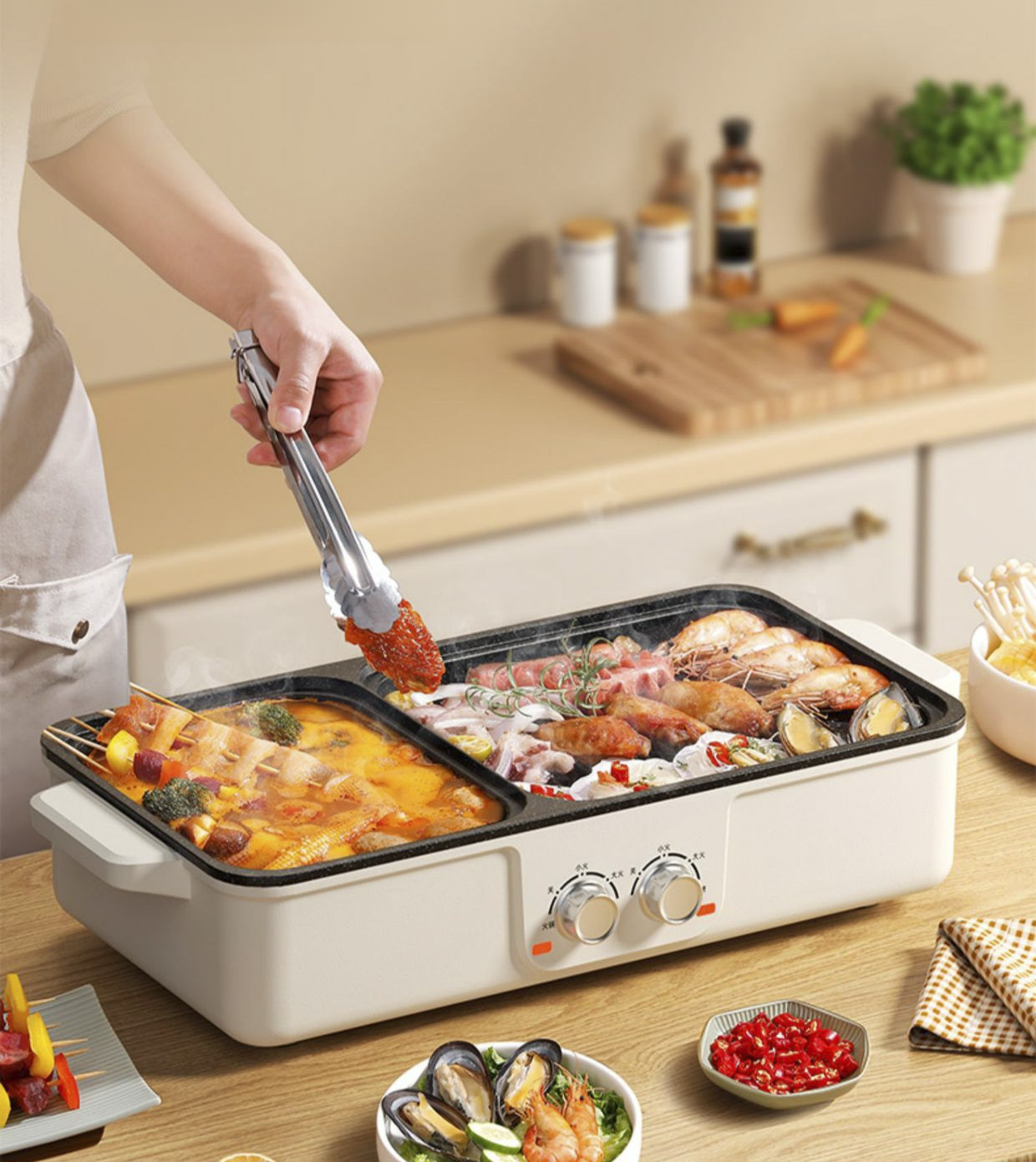 무연 전기 샤브샤브 그릴 다기능 전기냄비